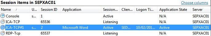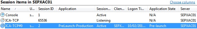 Once we launch an application the XenApp server can use the same session and will start up straight away as it is already Authenticated, Logged in, ran the Logon Scripts and loaded the Profile when started up. When the user starts an application we use the invisible session created by the Pre-Launch Session on the XenApp server. After the application has appeared on the user’s desktop, the Pre-Launch Session on the XenApp server is gone. The session that was called Pre-launch is now used by the user’s application. Now the session ID is the same and the state is now “Active”. Subsequent launches of other applications will also start straight away as it uses a good old session sharing.