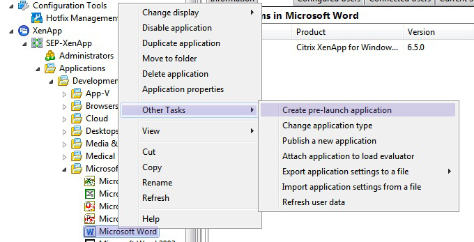 A Pre-Launch Session is based on an existing published application in the XenApp Farm. To create a pre-launch application, do the following steps.