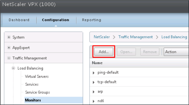 Open the NetScaler console and got to Traffic Management and expand Load Balancing. Click Servers and Add.