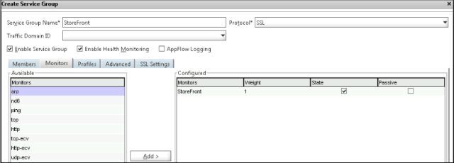 In the Monitors tab and choose the previously created StoreFront monitor and click Add