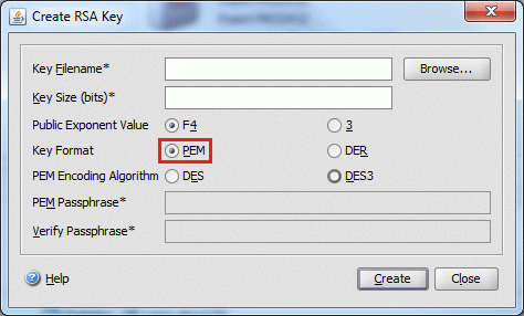 3. Specify the Key Filename and Key Size such as 1024 or 2048 bits.